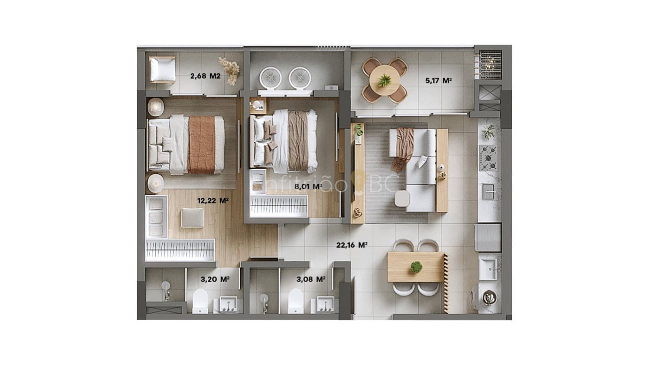 📐 Apartamento com 70,13 m² privativos: